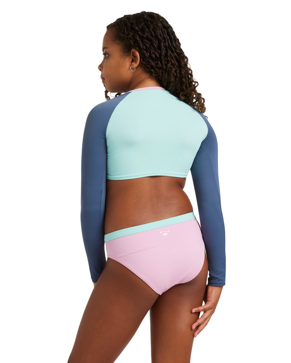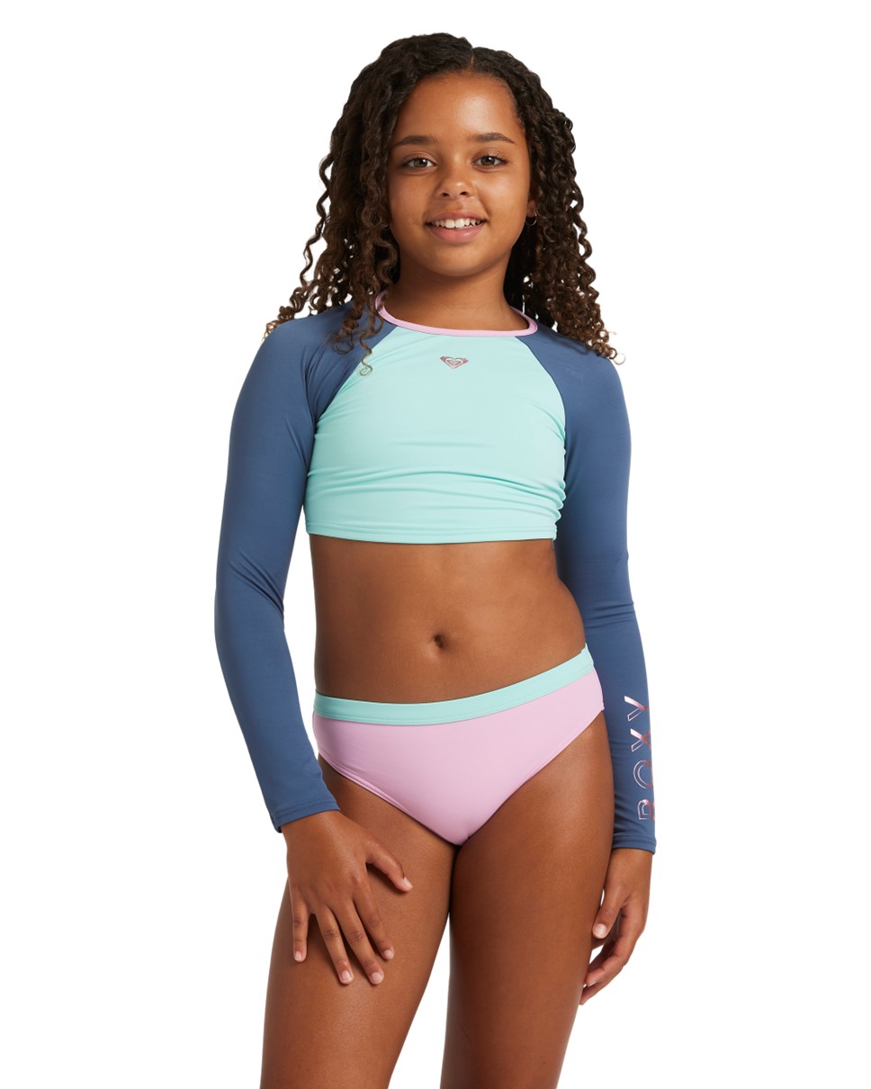 Colorblock Crop Top Lycra Set — A cute long-sleeve crop swim set with a fun colorblock design.