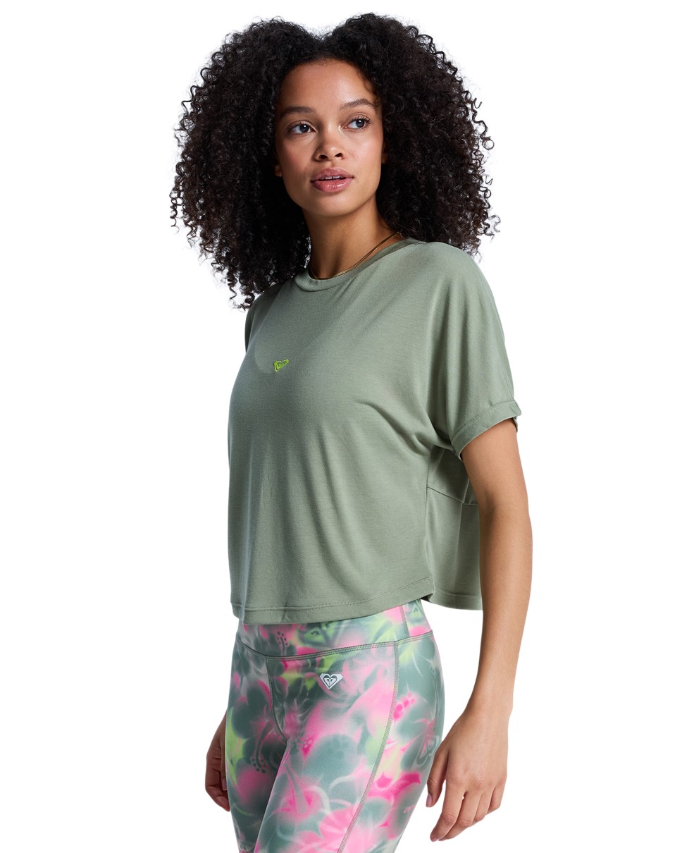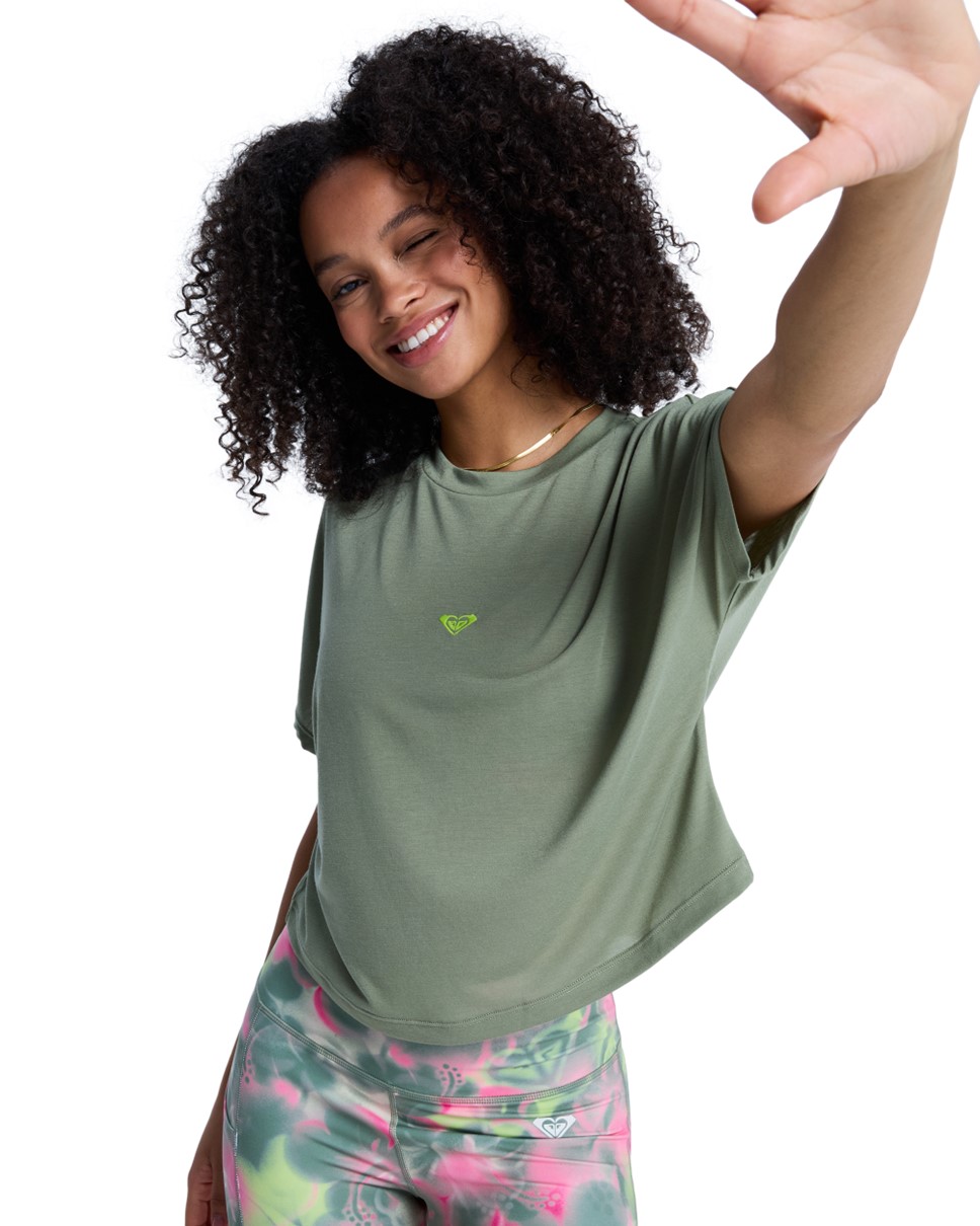 Roxy Active Everyday Flow Crossed Back Tee — A relaxed-fit active tee designed for effortless movement and comfort.
