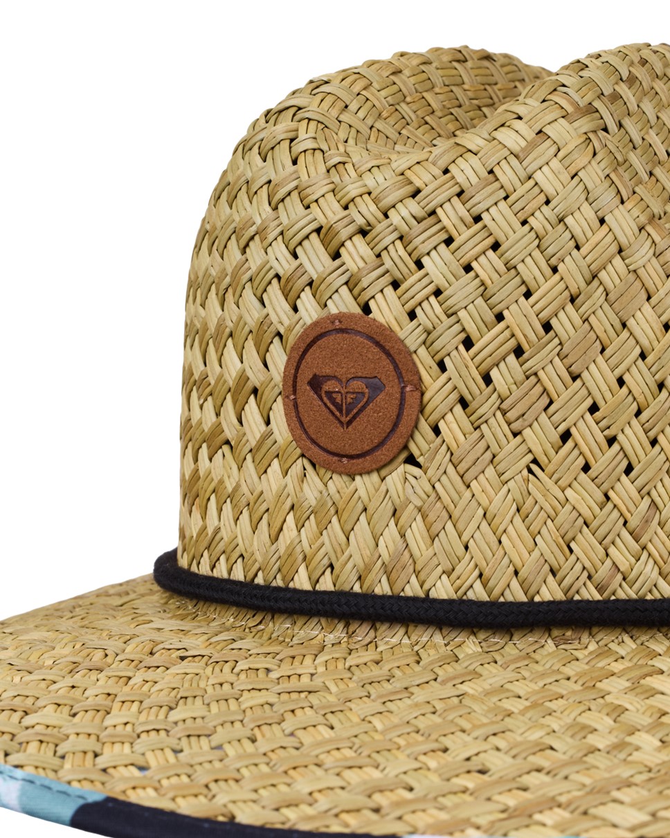 Printed fabric under the brim and a Roxy logo for an extra cute touch on sunny days.