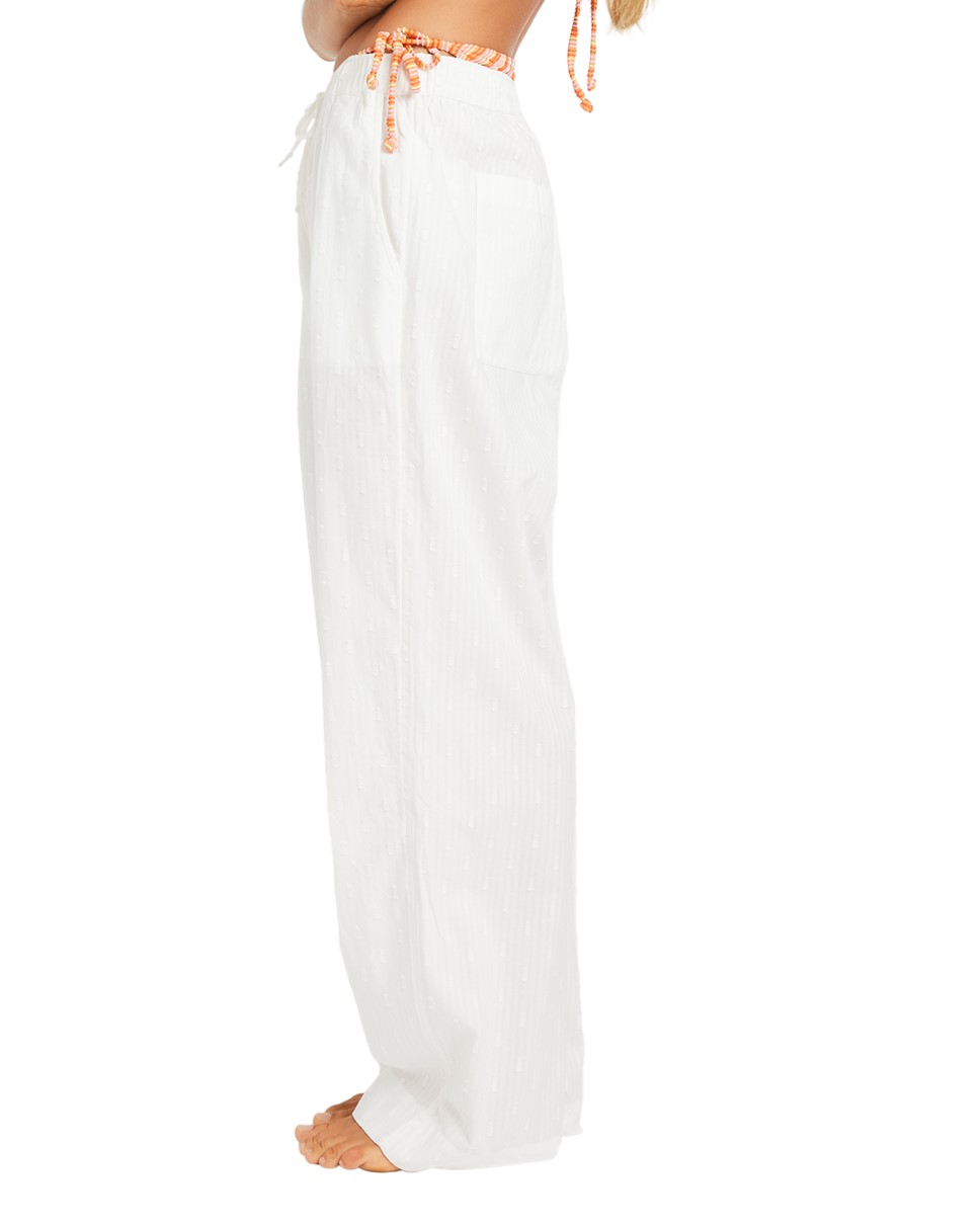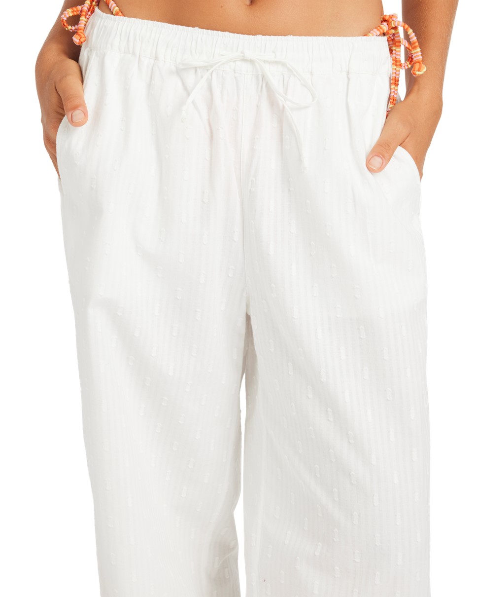 Island Soul Haven Pants — เติมลุคชิลล์ให้วันพักผ่อนด้วย กางเกงผ้าฝ้าย 100% สัมผัสนุ่ม เบา สบายทุกการเคลื่อนไหว ดีไซน์เรียบแต่มีสไตล์ พร้อมโลโก้ Roxy สุดเก๋
