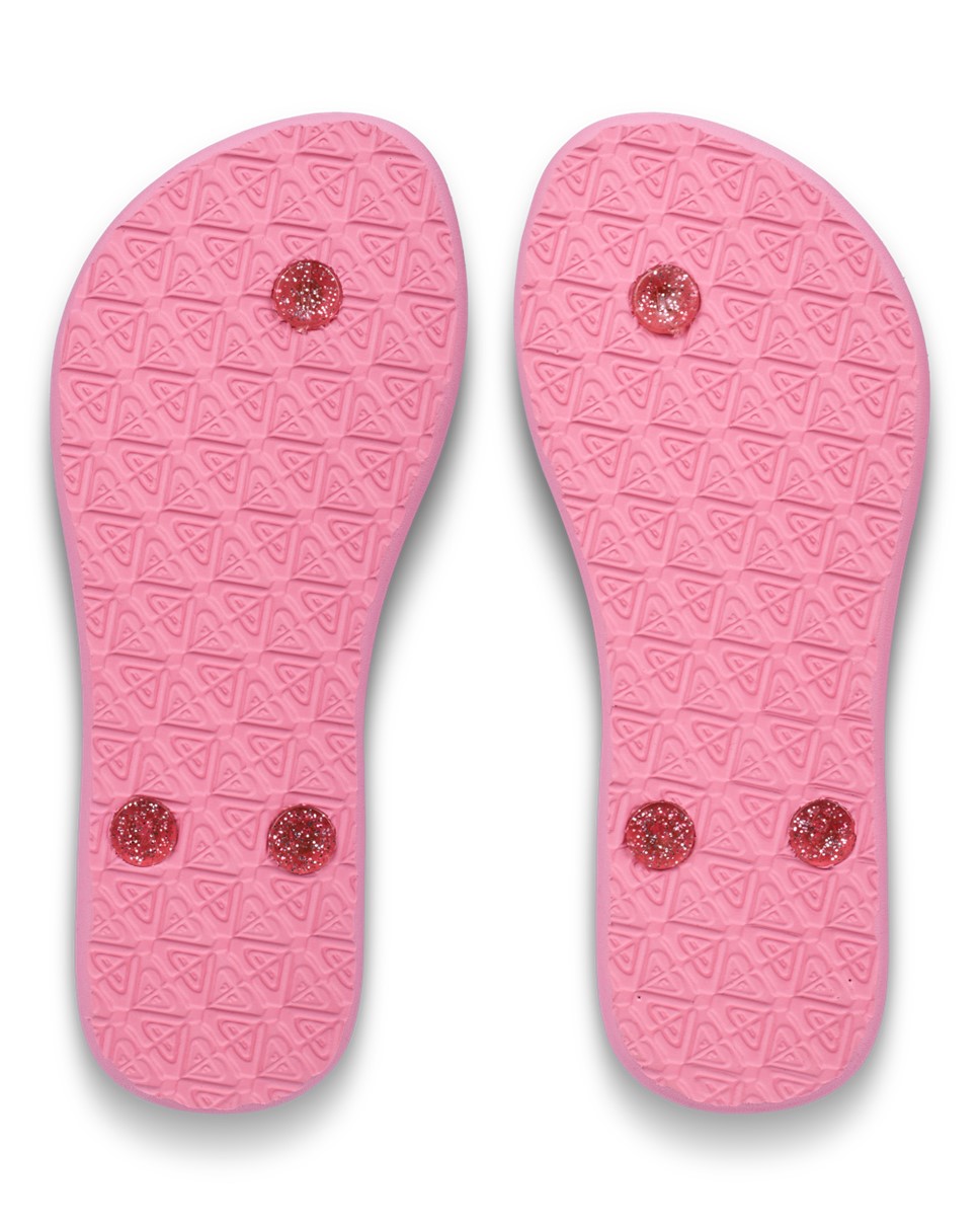 Footbed: Textured, recycled rubber sponge EVA with printed glitter Roxy logo,