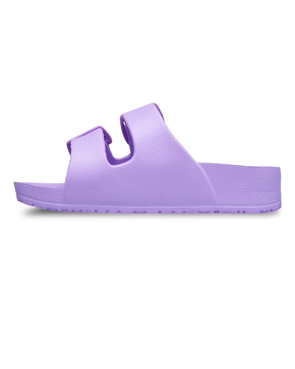 One-piece moulded sandal designed to have low environmental impact and minimal waste in production,