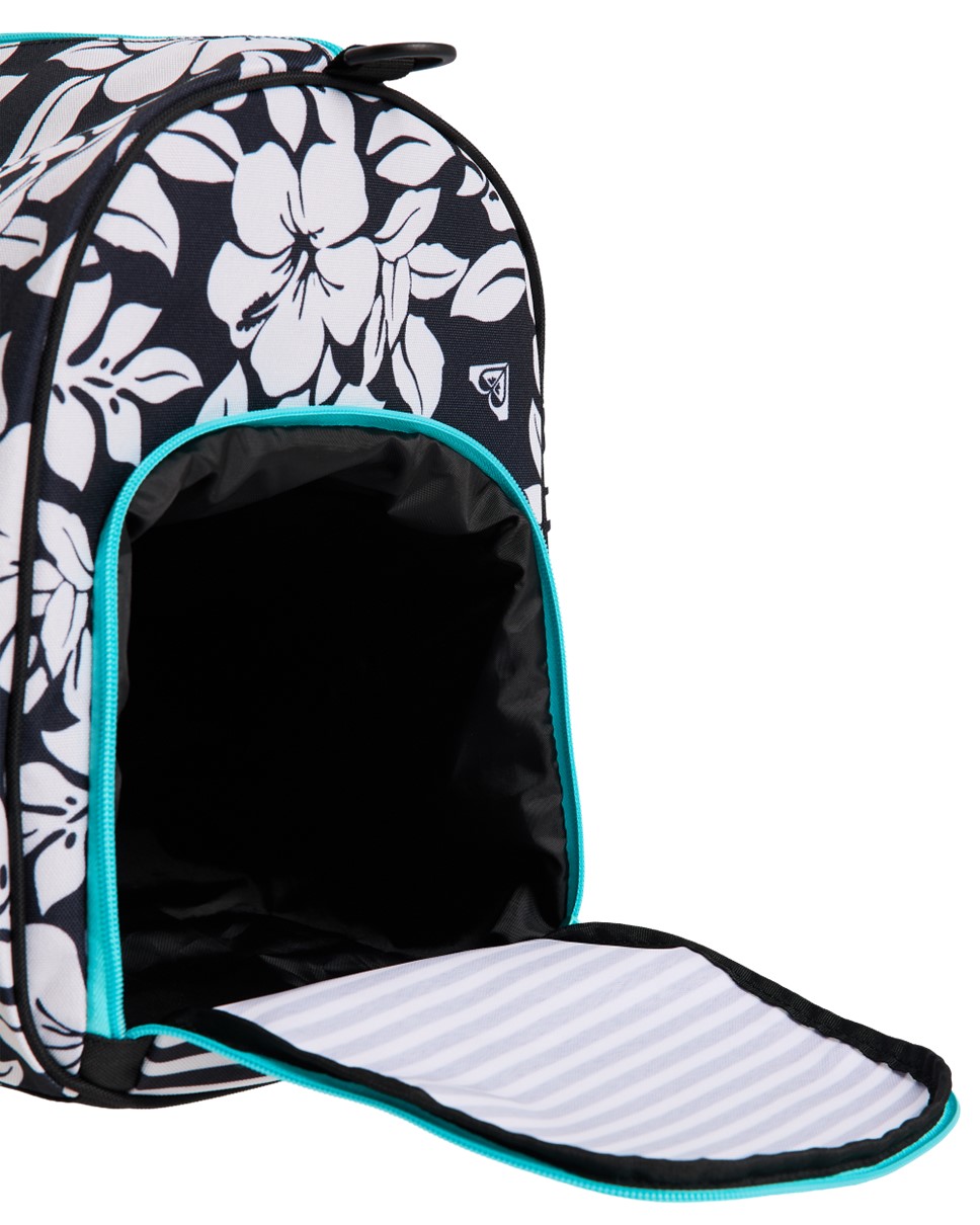Made from vibrant recycled fabric with a separate shoe compartment for easy organization.