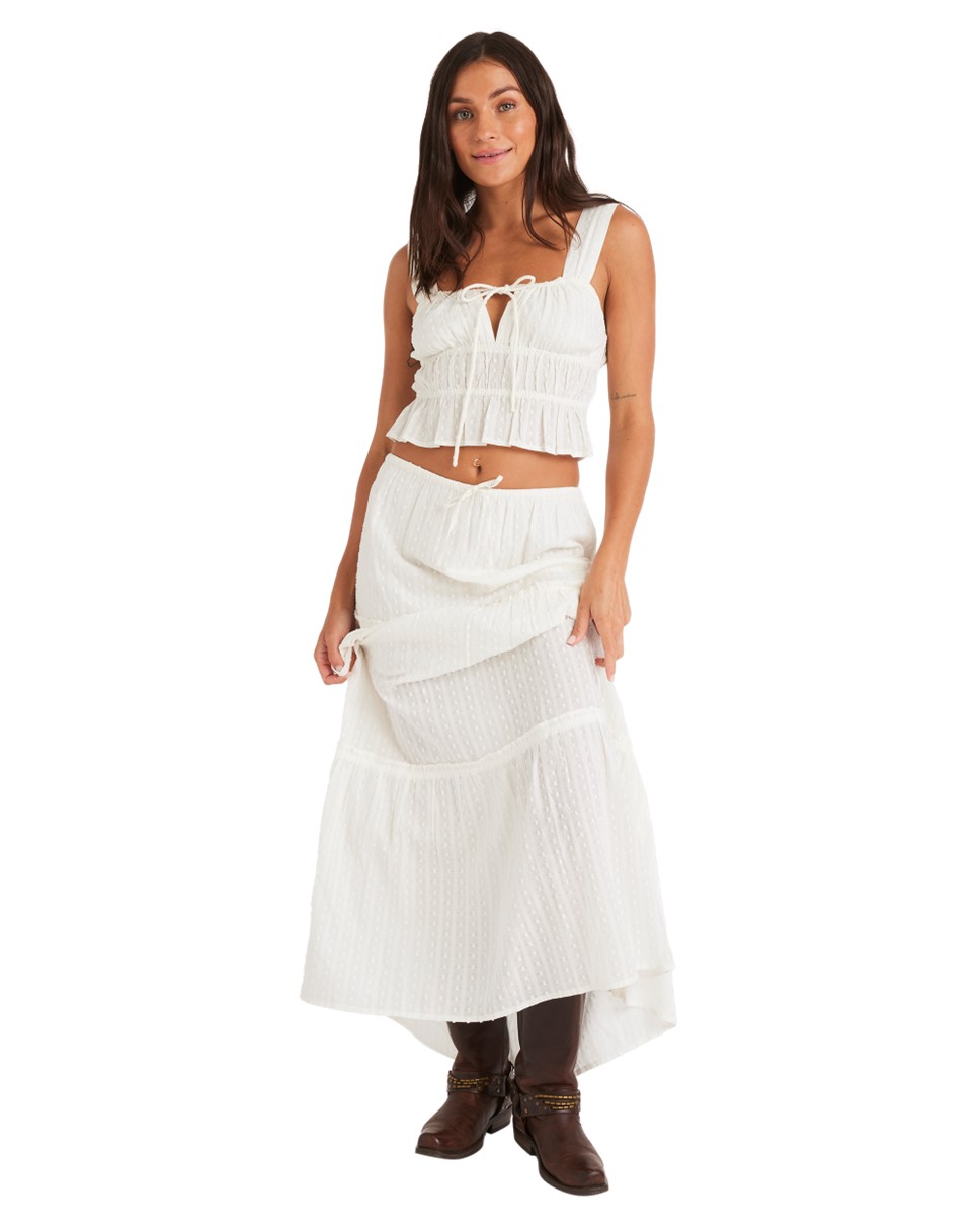 Sol Sunset Mist Top — Soft and lightweight cotton dobby fabric, sleeveless gathered design with a tie-neck bow for a touch of gentle sweetness.